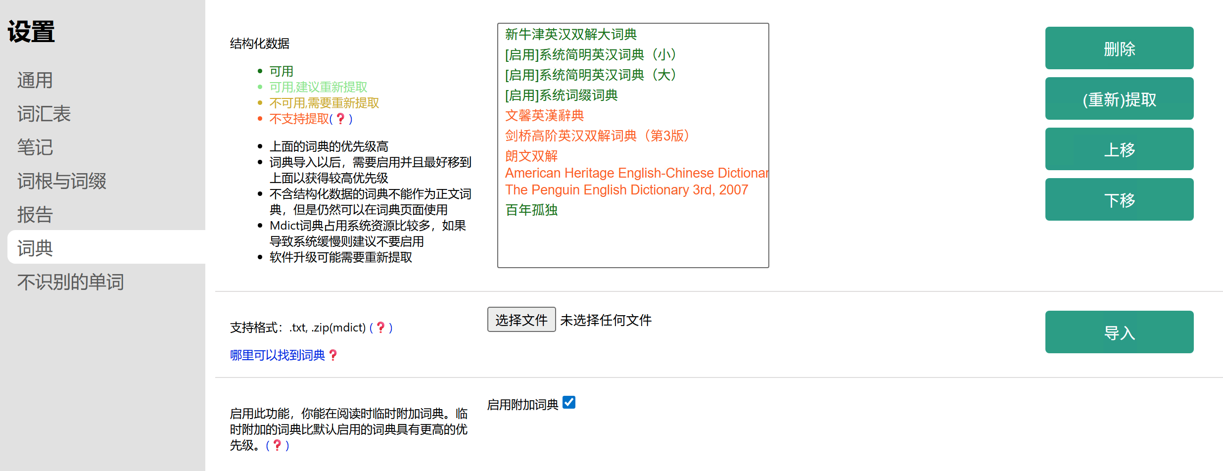 指定生词的颜色,默认不启用。如果注重阅读体验,建议不要启用,因为它可能会干扰阅读体验;如果是精读,或者注重词汇学习,可以尝试启用。